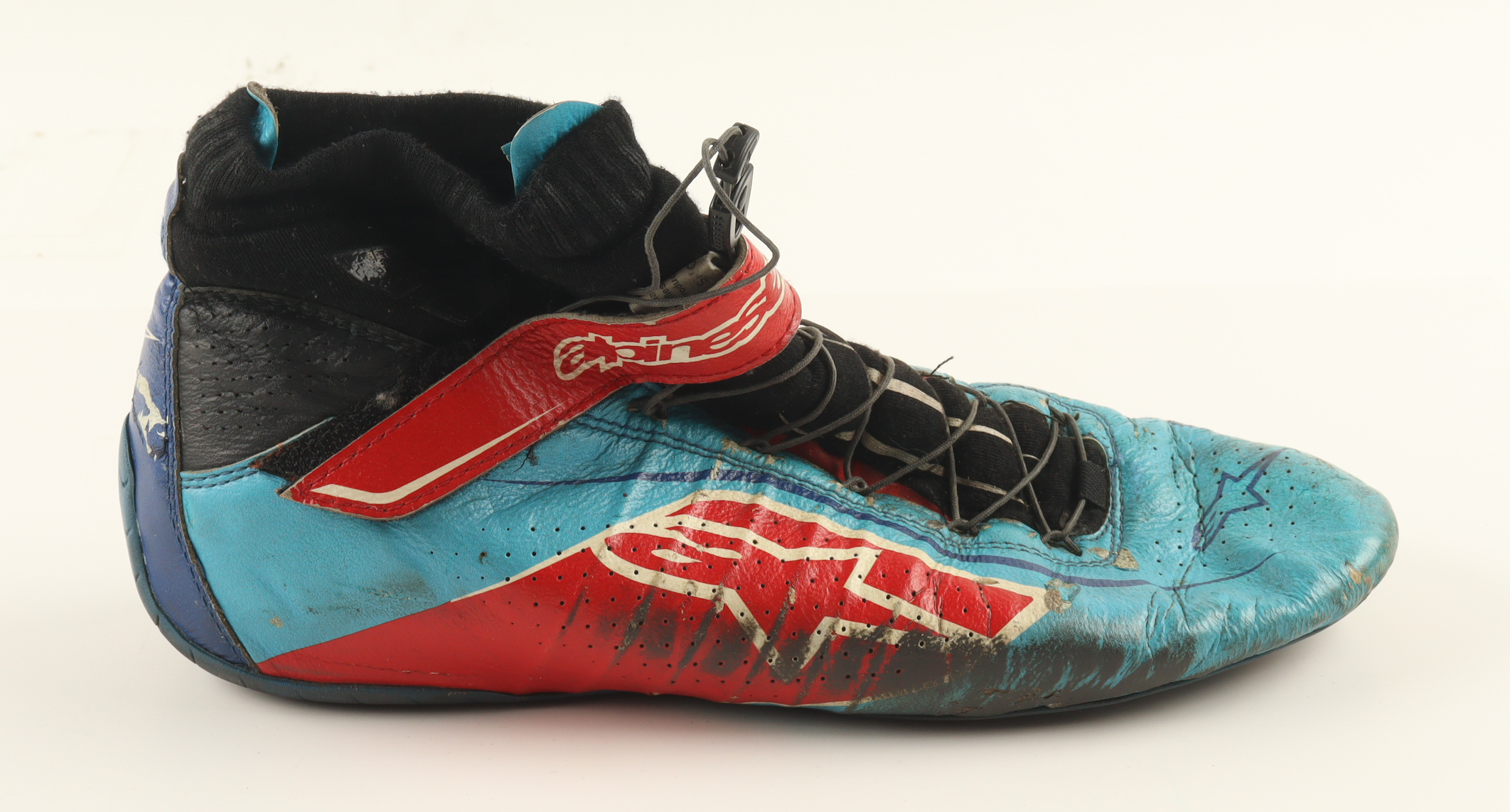 Alpinestars racing shoe. Race-worn during the 2021 season by Richard Petty's grandson, Thad Moffit.
