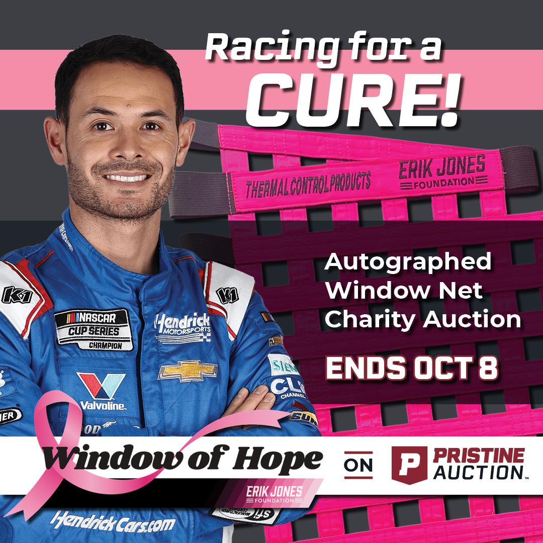 Own race-used, autographed NASCAR window nets and support the fight against breast cancer