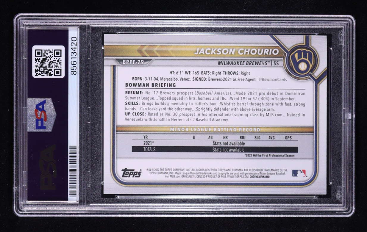Jackson Chourio Signed 2022 Bowman 1st Edition #BPPF79 RC (PSA Authentic | Auto 10)