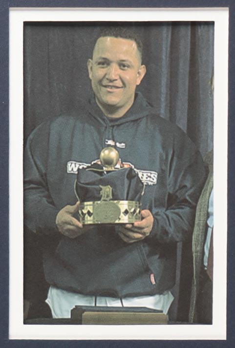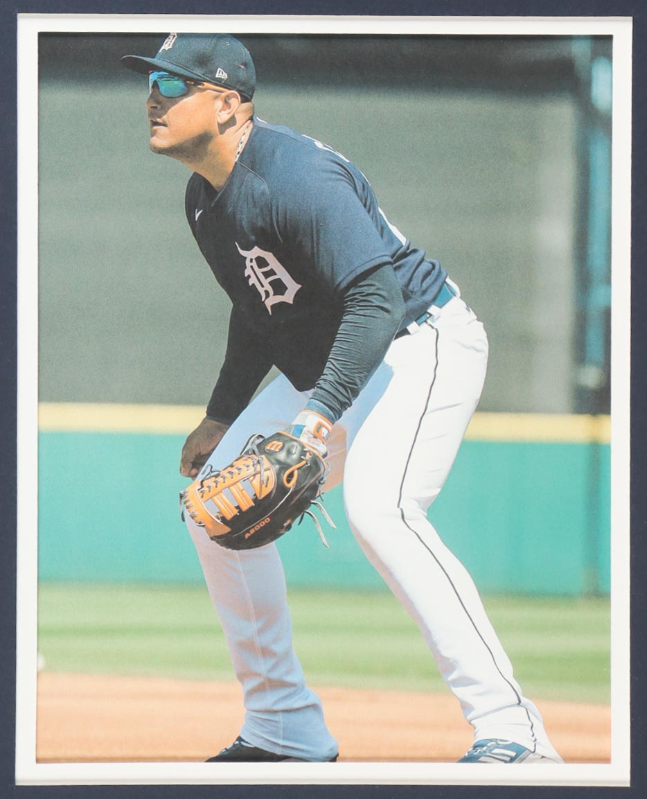 Custom frame measures 34" x 42" in size. Jersey has been hand-signed by Miguel Cabrera (Detroit Tigers). Display also includes (4) unsigned photographs and a team logo patch.
