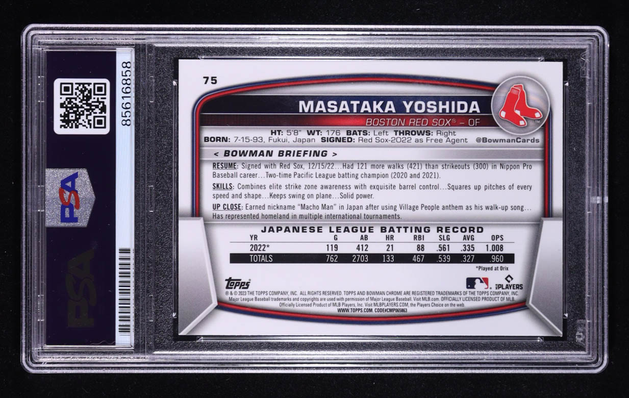 Masataka Yoshida Signed 2023 Bowman Chrome #75 RC (PSA Authentic)