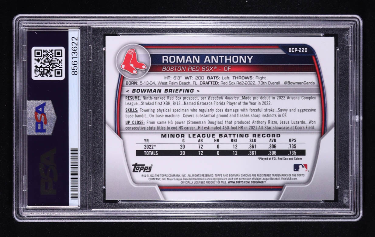 Roman Anthony Signed 2023 Bowman Chrome Prospects #BCP220 RC (PSA Authentic | Auto 10)