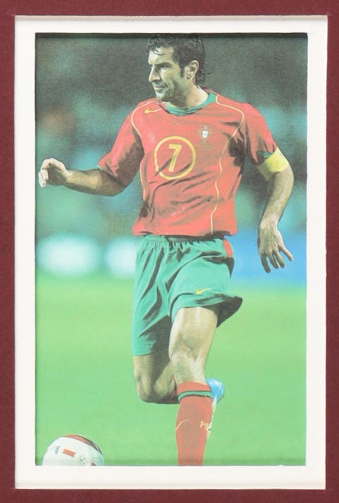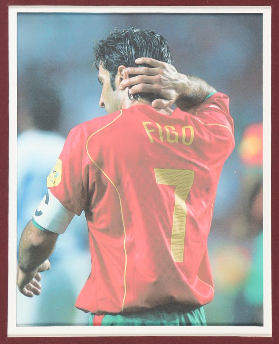 Custom frame measures 34" x 42" in size. Jersey has been hand-signed by Luis Figo (Team Portugal). Display also includes (4) unsigned photographs and a team logo patch.