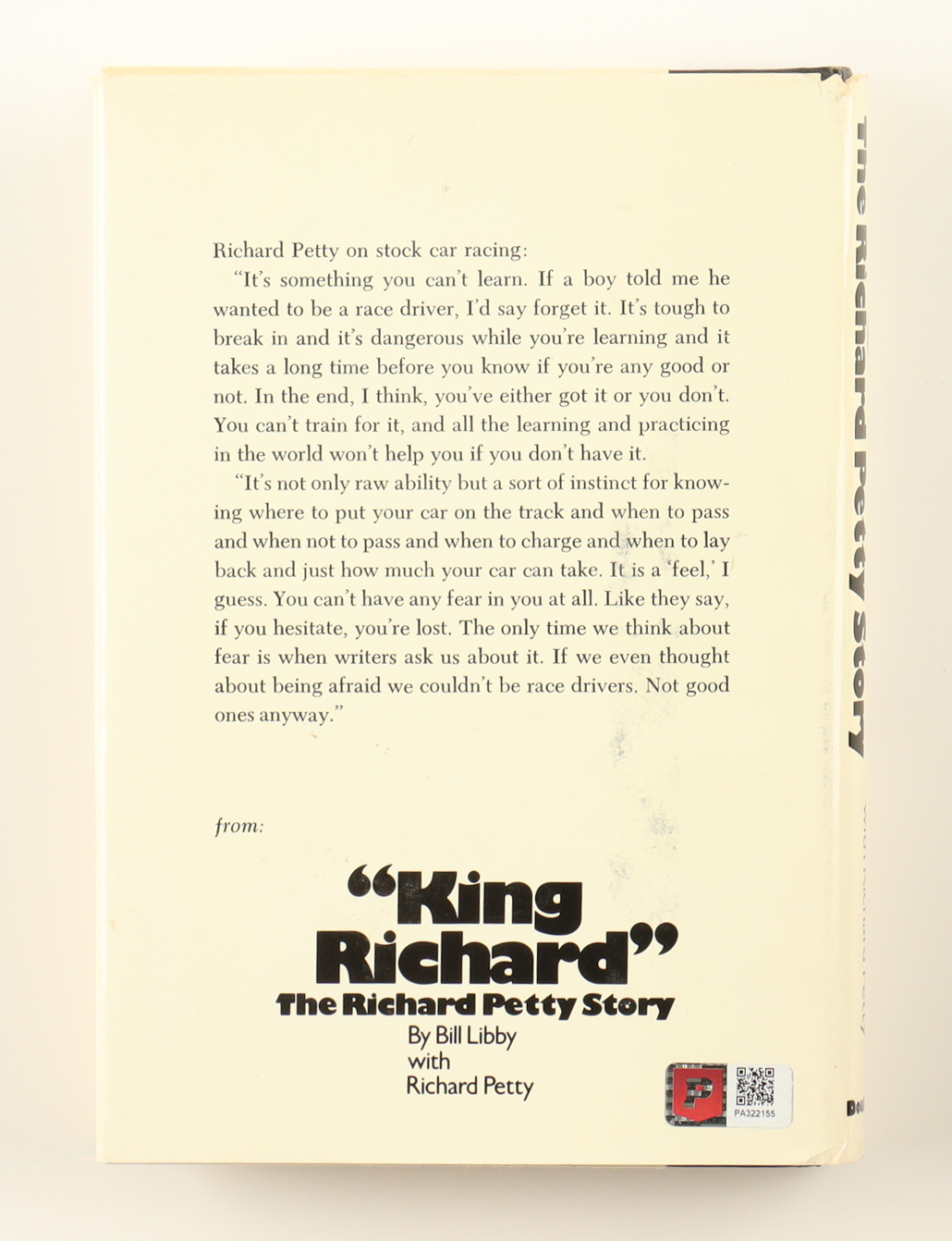 Hardcover book has been hand-signed on the front cover by Richard Petty (HOF).