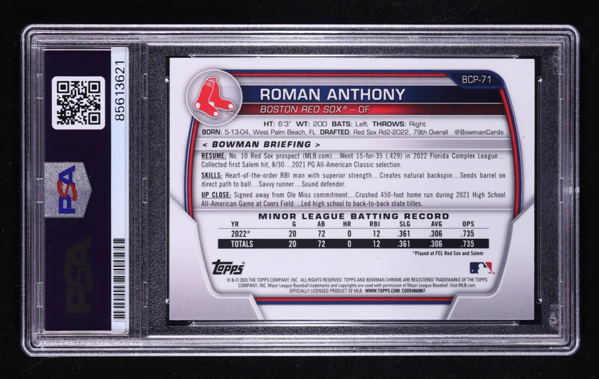 Roman Anthony Signed 2023 Bowman Chrome Mega Box Prospects #BCP71 RC (PSA Authentic | Auto 10)
