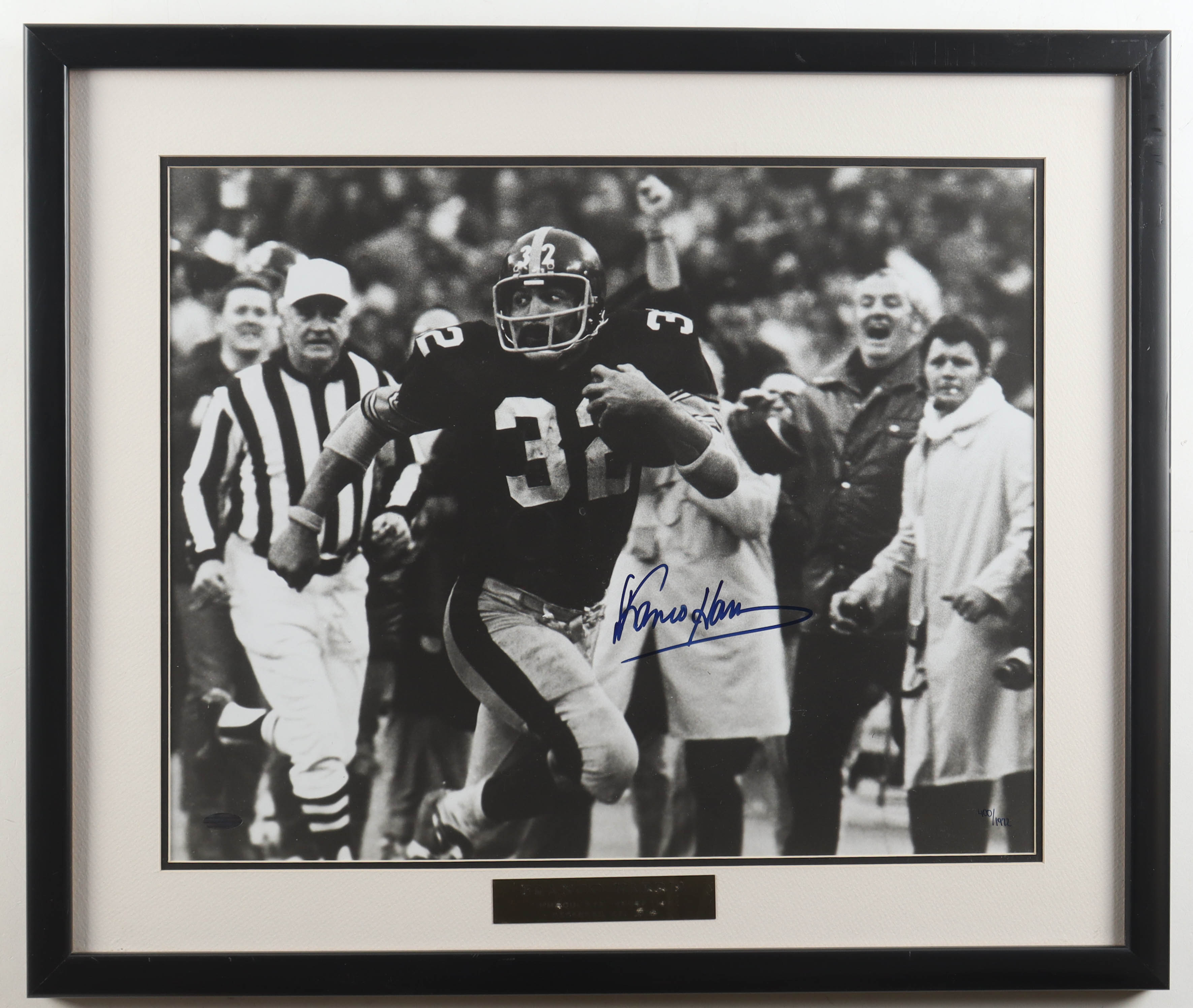 Franco Harris Signed Steelers Custom Framed Photo Display with Title Plaque (Steiner)