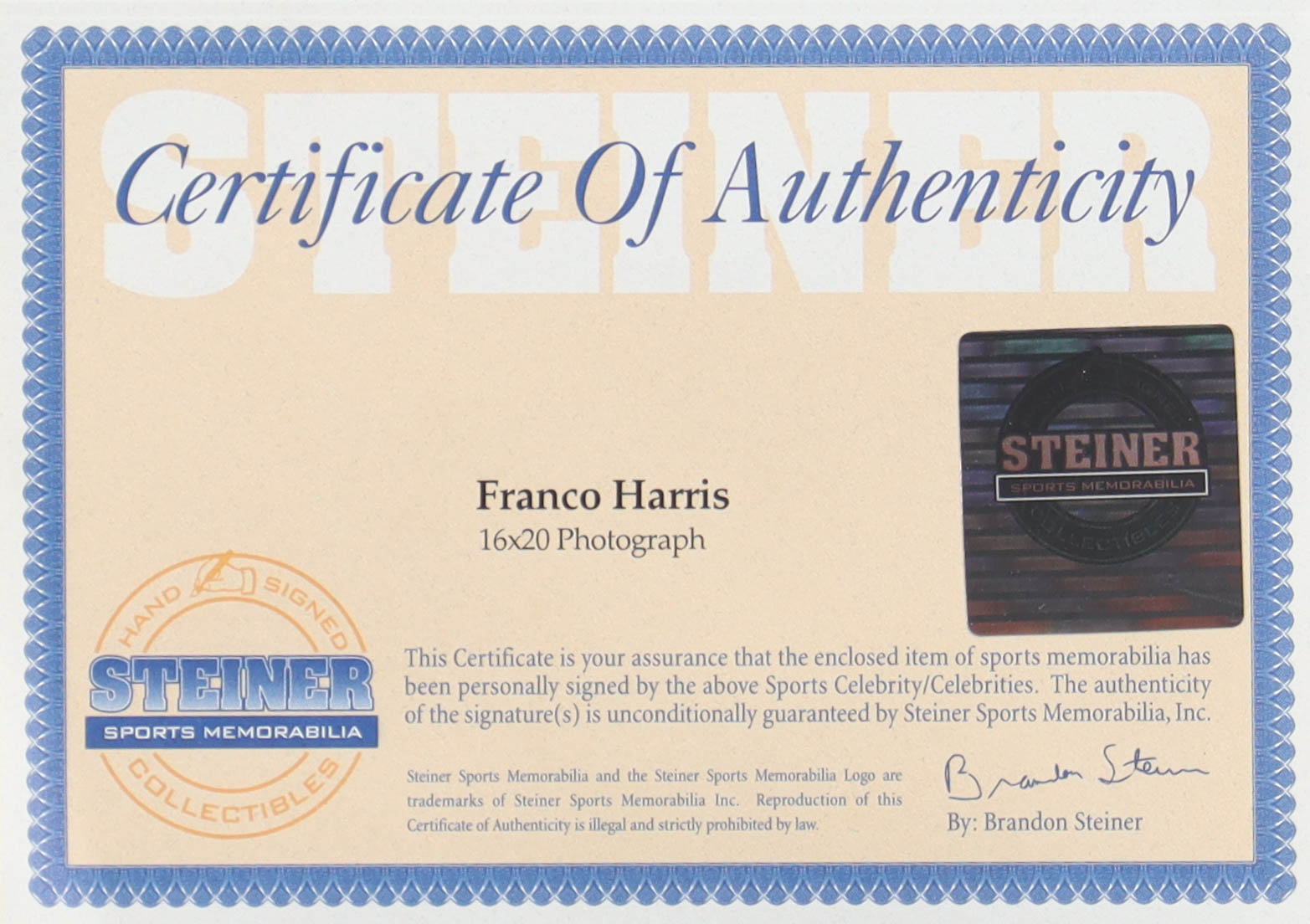 The autograph(s) includes an official Steiner Sports hologram and matching COA for authenticity purposes.