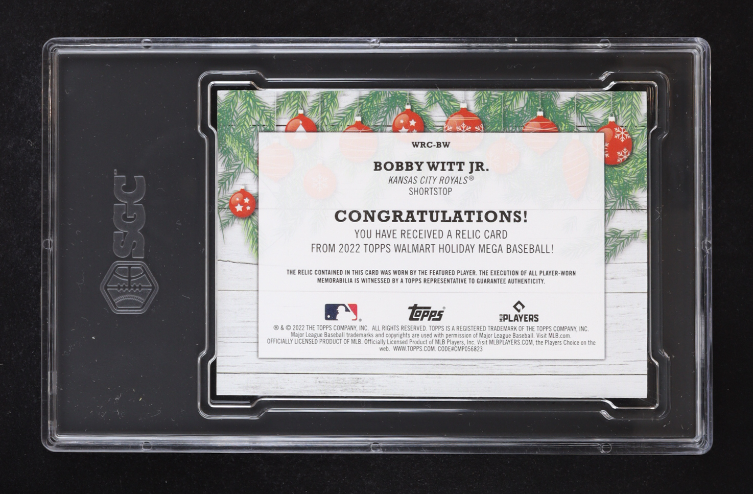 Bobby Witt Jr. 2022 Topps Holiday Relic #WRC-BW RC (SGC 9.5)