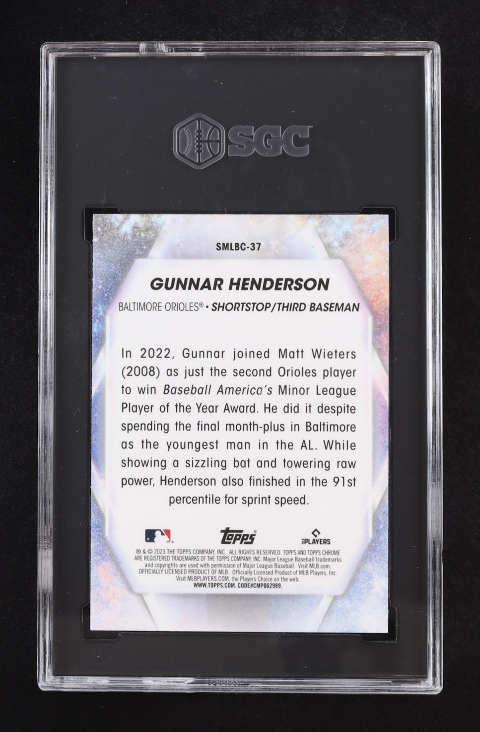 Gunnar Henderson 2023 Topps Chrome Stars Of MLB #SMLB-37 RC (SGC 10)