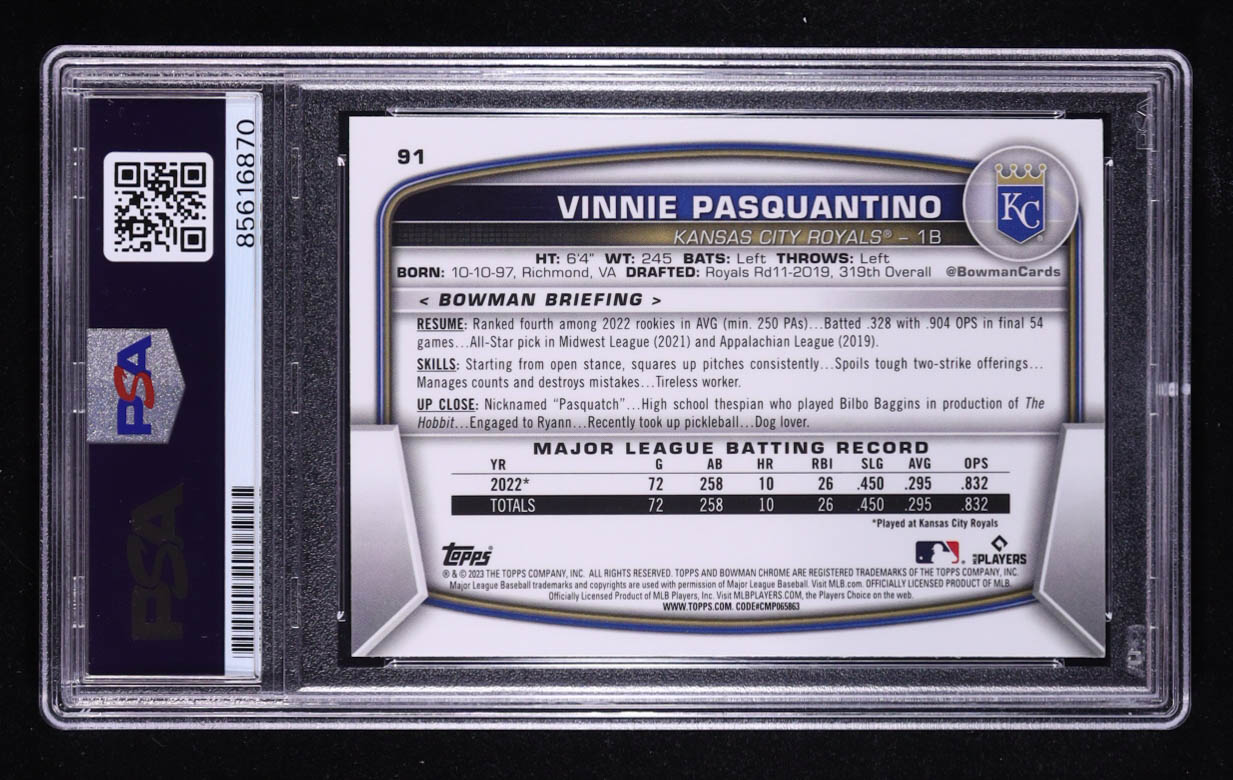 Vinnie Pasquantino Signed 2023 Bowman Chrome #91 RC (PSA Authentic)