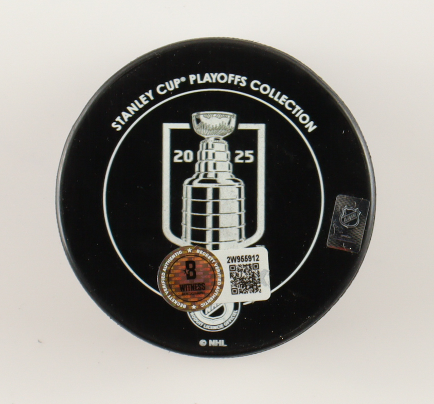 Aleksander Barkov Signed Panthers 2025 Stanley Cup Champions Logo Hockey Puck (Beckett)