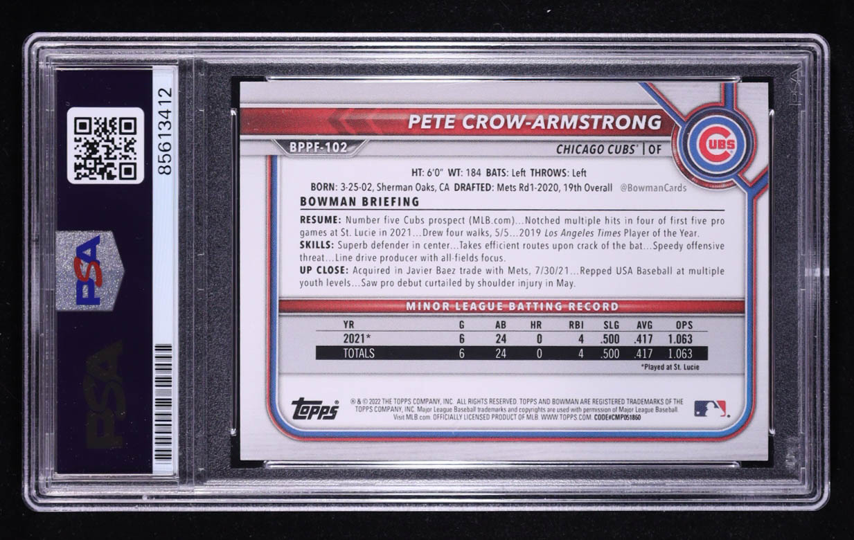 Pete Crow-Armstrong Signed 2022 Bowman 1st Edition #BPPF102 RC (PSA Authentic | Auto 10)
