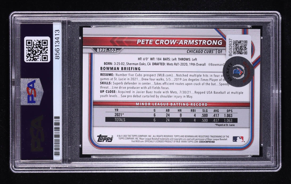 Pete Crow-Armstrong Signed 2022 Bowman 1st Edition #BPPF102 RC (PSA Authentic | Auto 10)