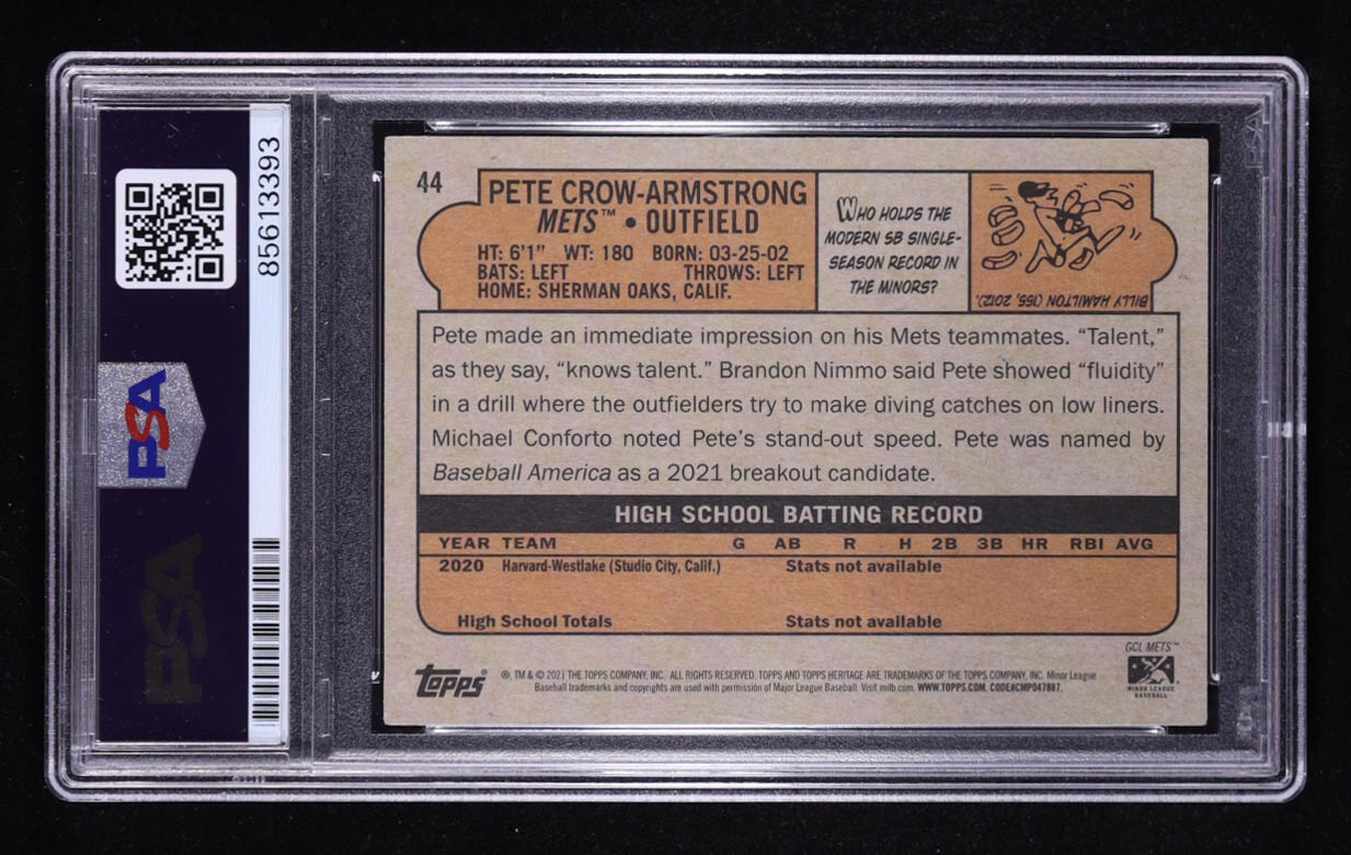 Pete Crow-Armstrong Signed 2021 Topps Heritage Minors #44 RC (PSA Authentic | Auto 10)