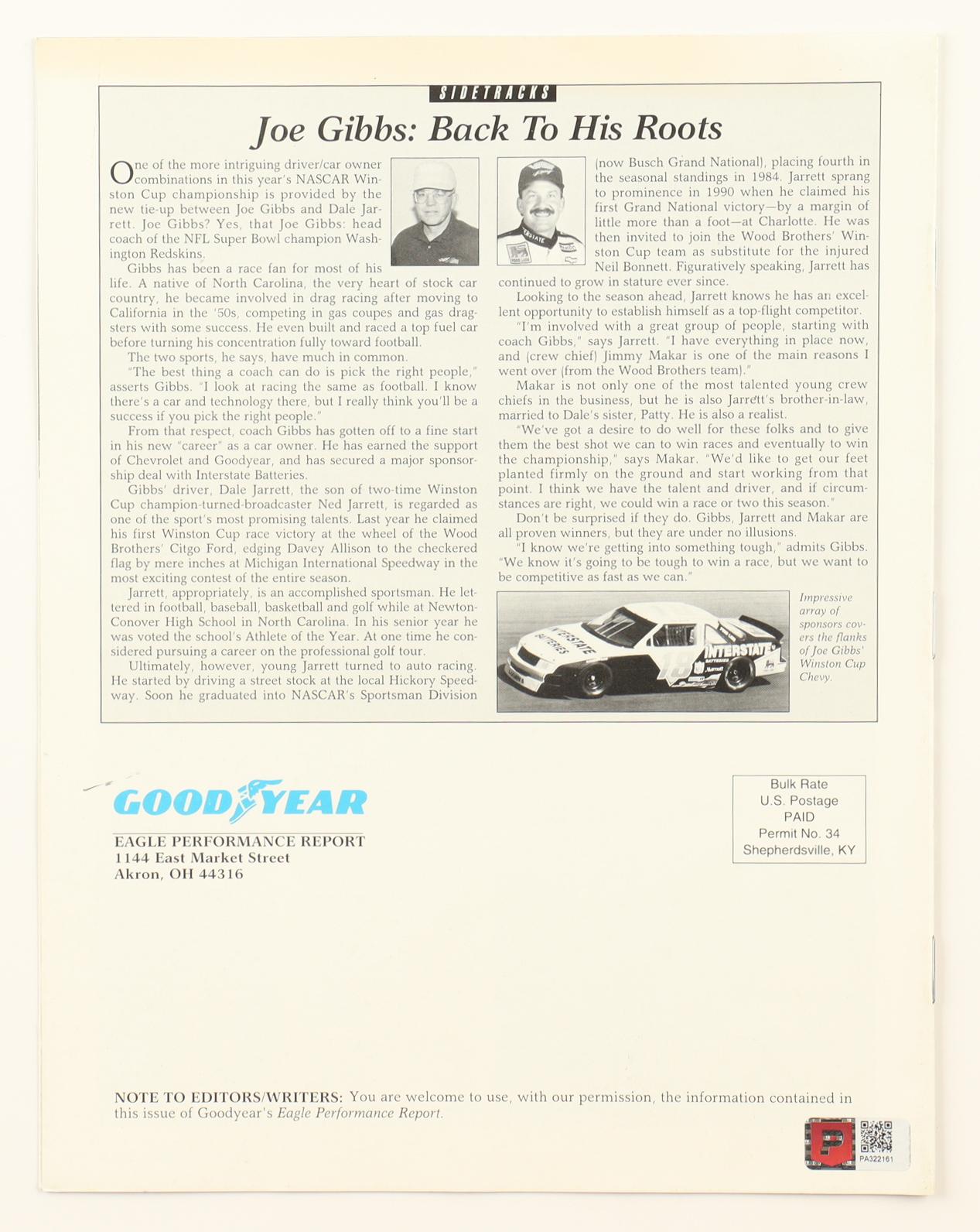 Eagle Performance Report magazine dated Spring 1992 has been hand-signed by Richard Petty (HOF).