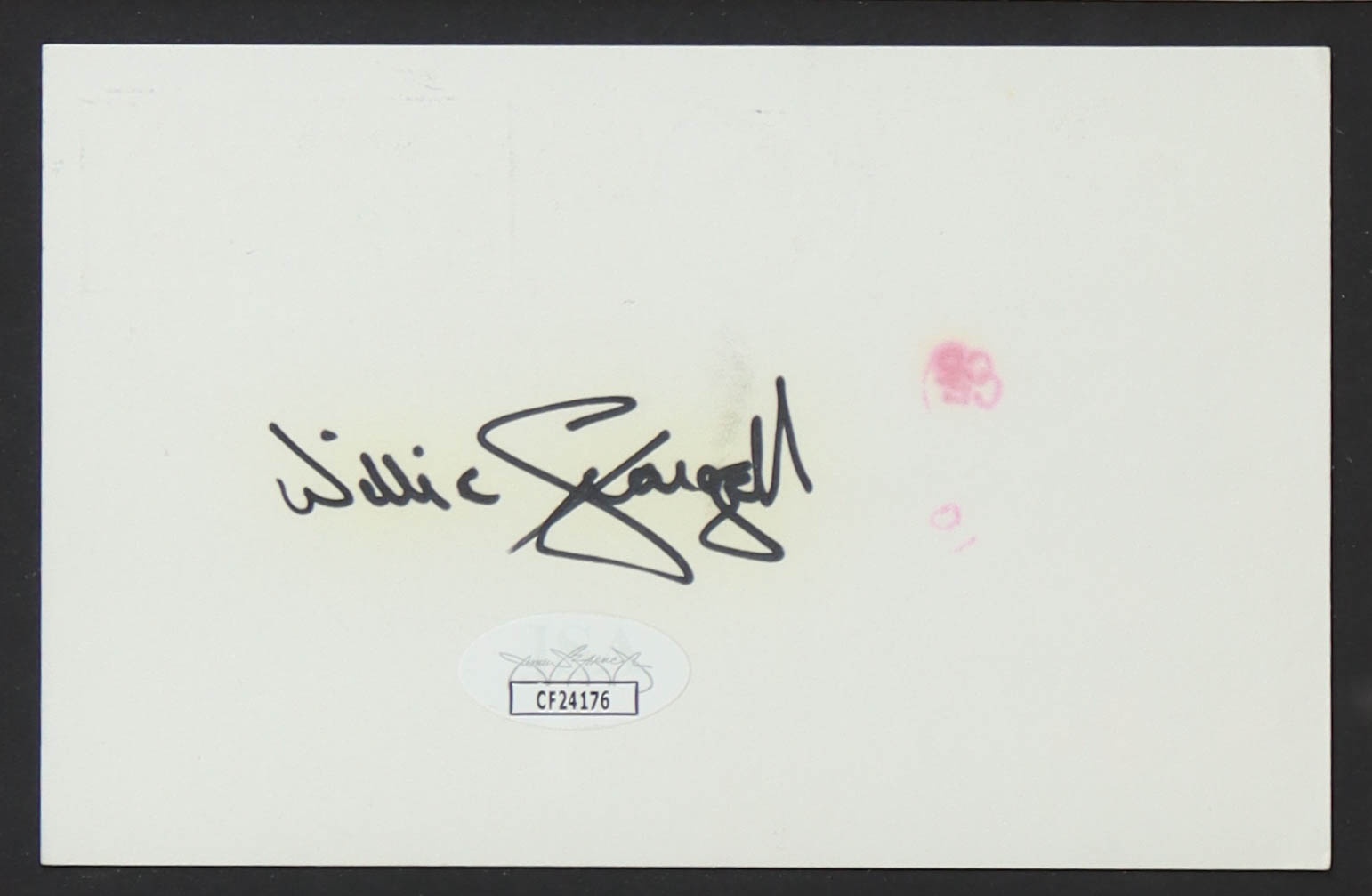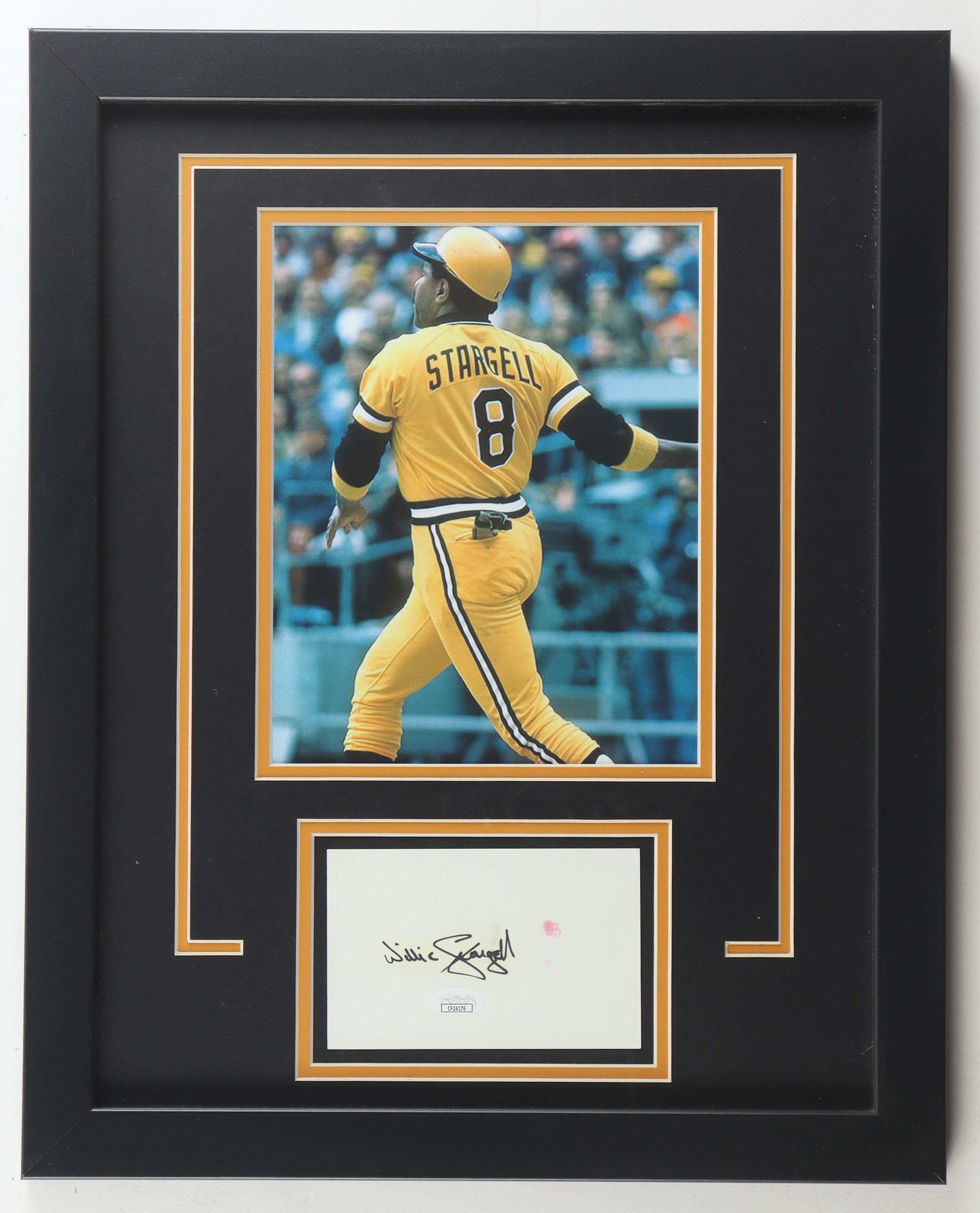 Custom frame measures 16" x 20" in size. Index card is hand-signed by Willie Stargell (Pittsburgh Pirates). Display also includes an unsigned 8" x 10" photograph.