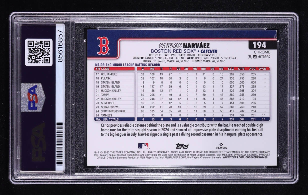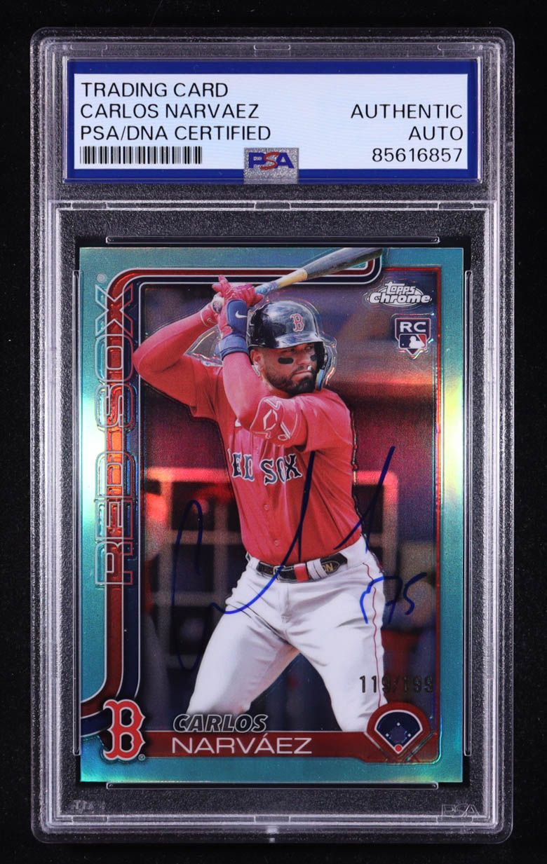 Carlos Narvaez Signed 2025 Topps Chrome Aqua Refractors #194 #119/199 RC (PSA Authentic)