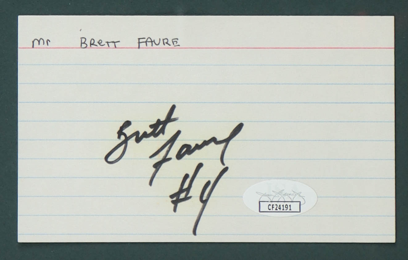 Brett Favre Signed Packers Custom Framed Index Card Display (JSA)