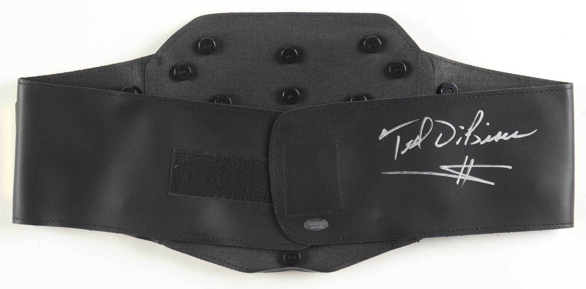 Replica WWE Championship Belt (plastic) measures 38" in size and is hand-signed by Ted DiBiase (HOF). Please note that the signature is slightly smeared.