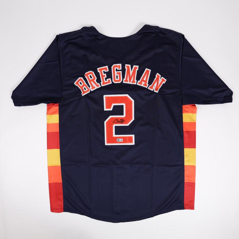 Custom jersey with everything sewn on, size XL. Hand-signed by Alex Bregman.