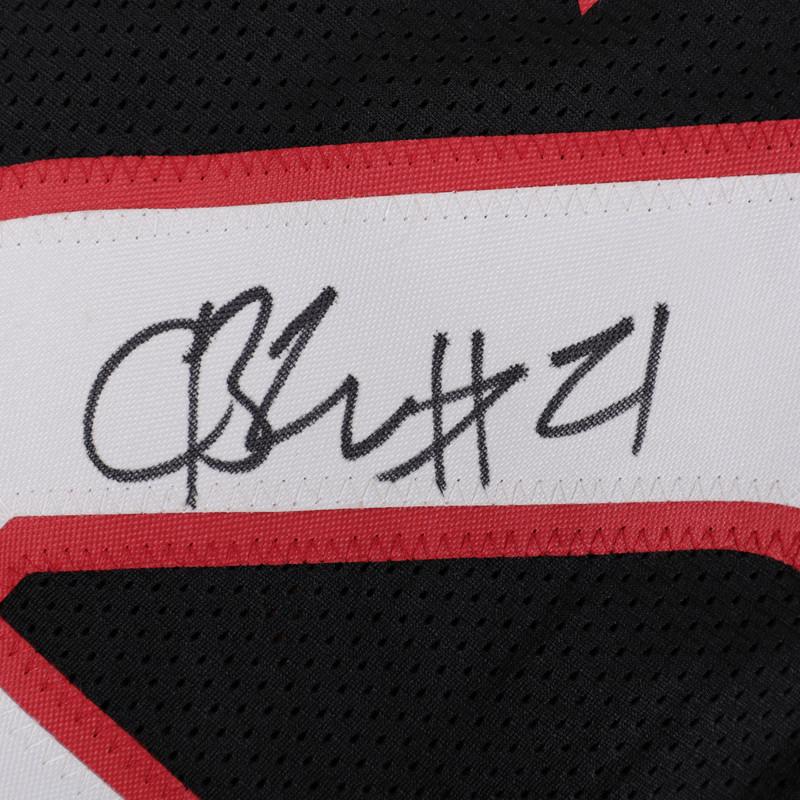 Custom jersey with everything sewn on, size XL. Hand-signed by Calen Bullock.