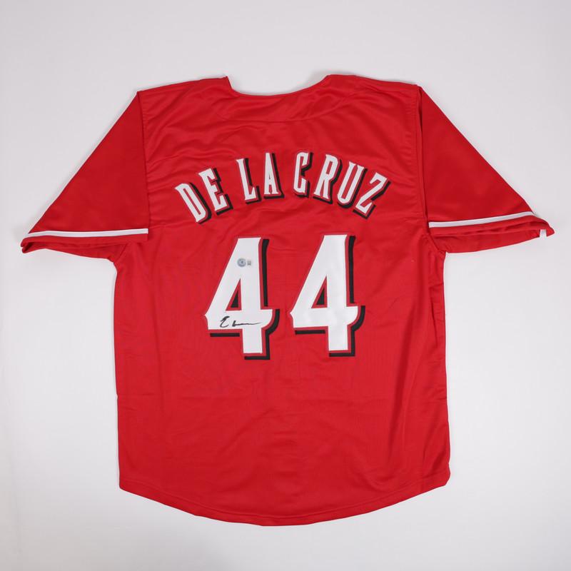 Custom jersey with everything sewn on, size XL. Hand-signed by Elly De La Cruz.