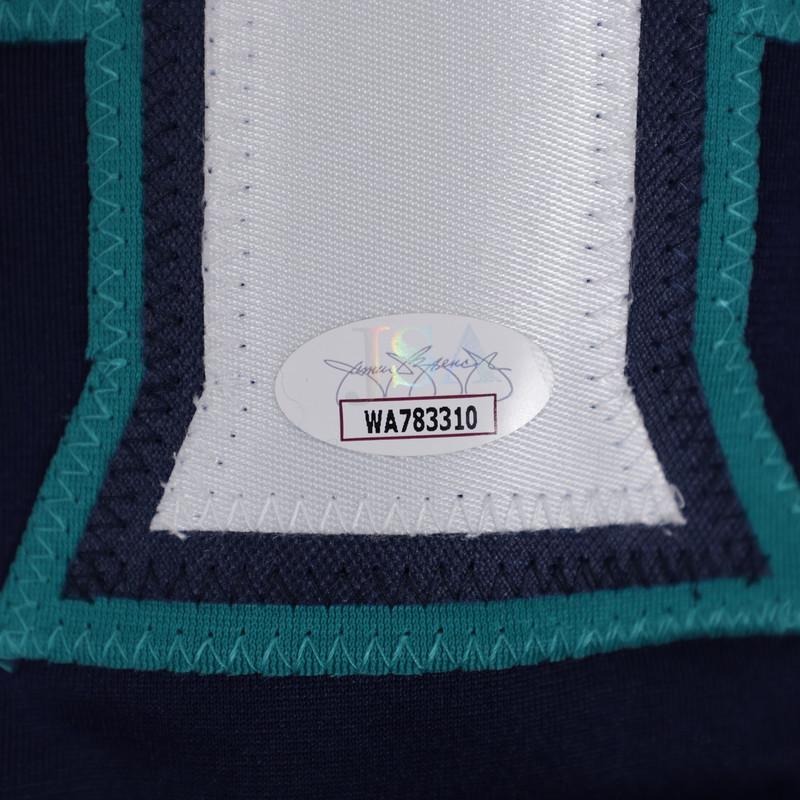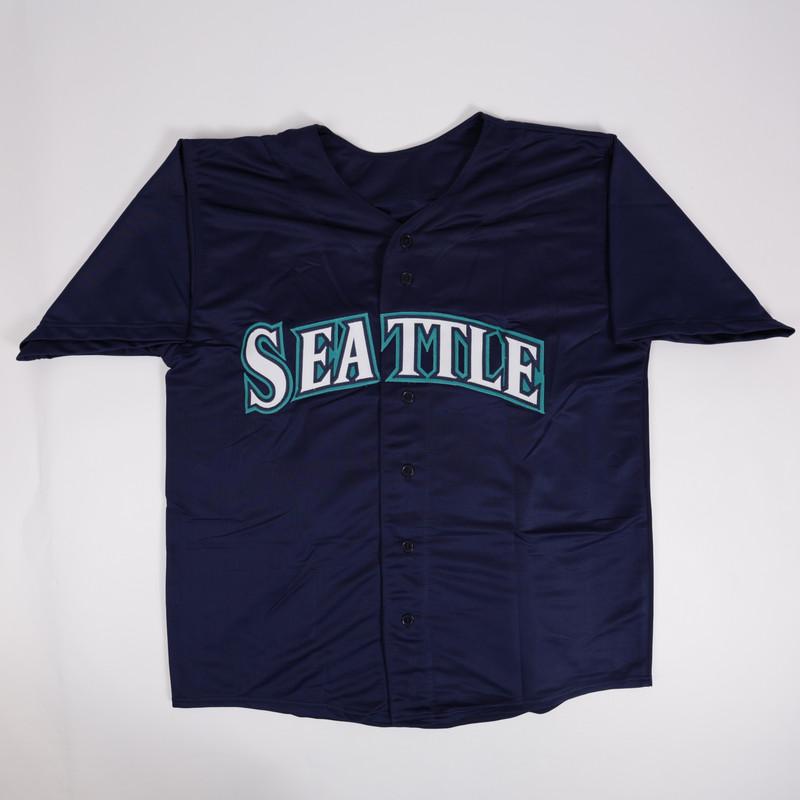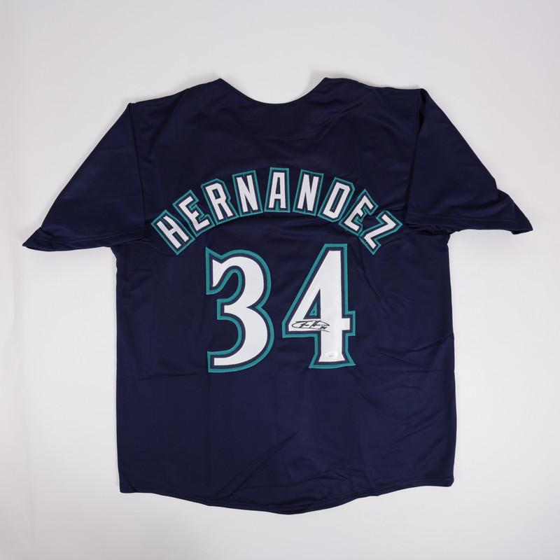 Custom jersey with everything sewn on, size XL. Hand-signed by Felix Hernandez.
