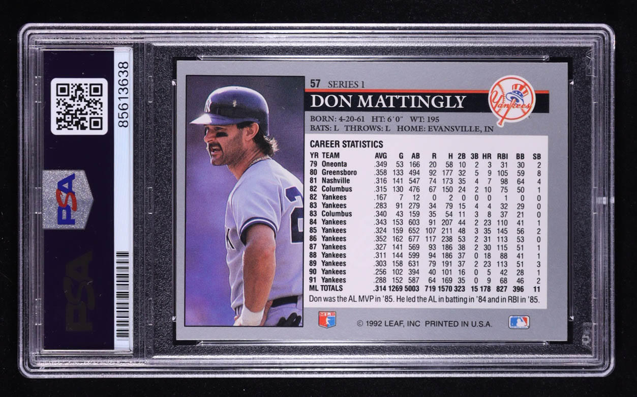 Don Mattingly Signed 1992 Leaf #57 (PSA Authentic | Auto 10)