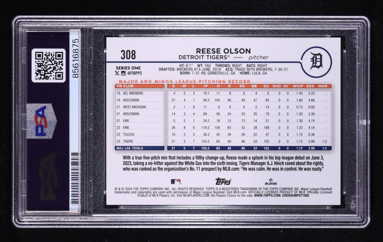 Reese Olson Signed 2024 Topps #308 RC (PSA Authentic)