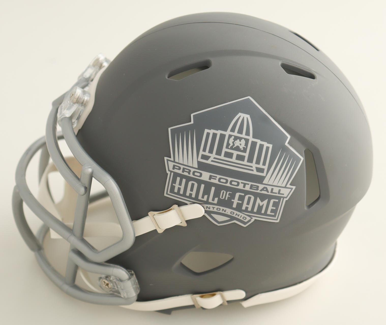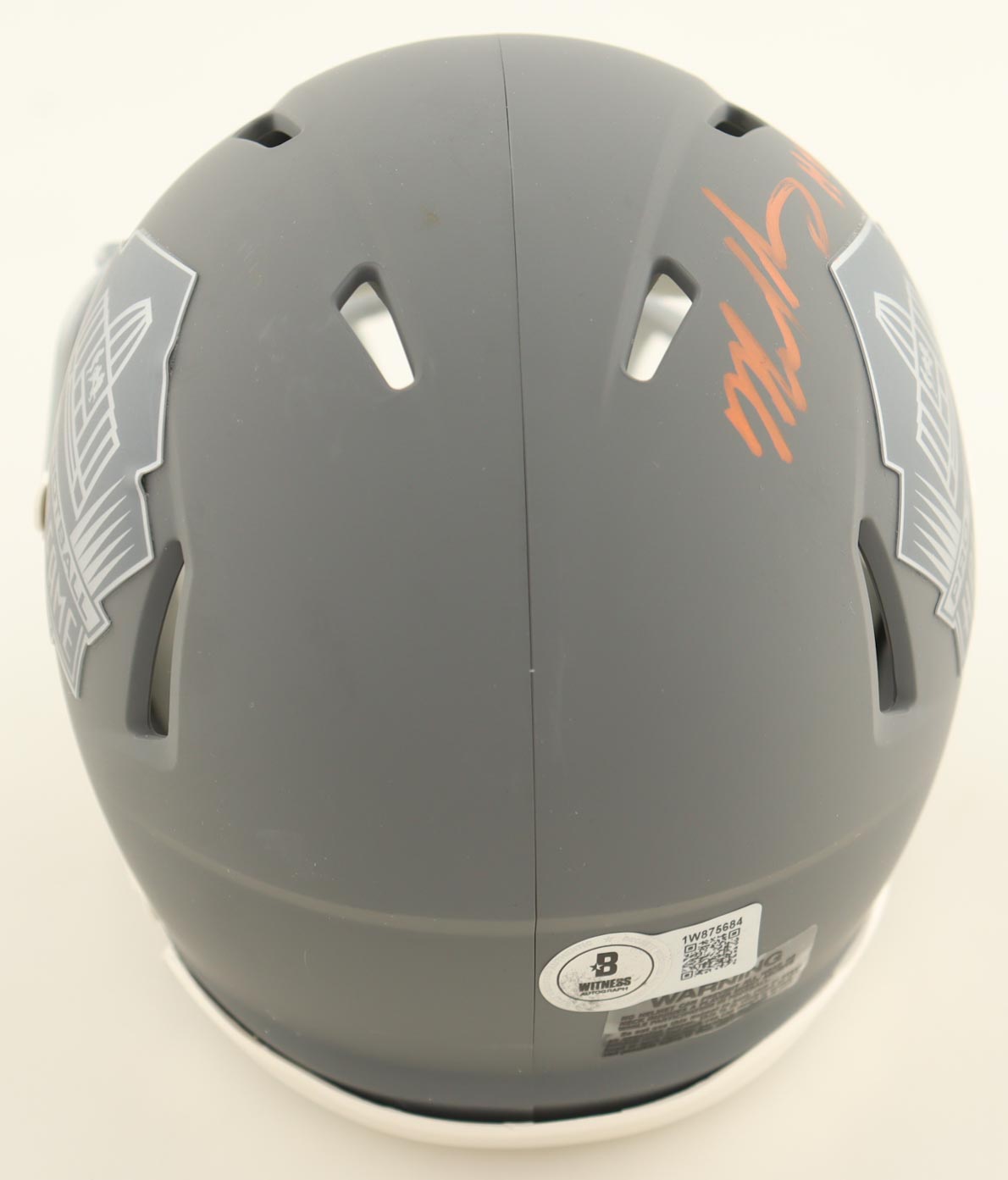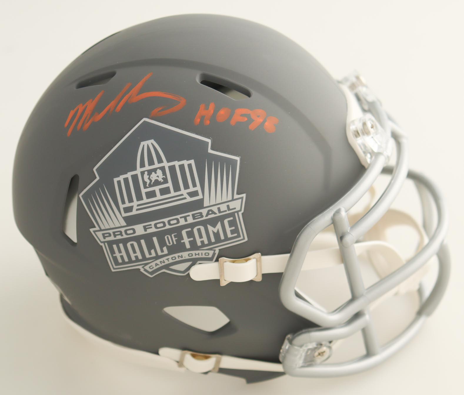 Riddell Hall of Fame Logo Slate Alternate Speed Mini Helmet. Hand-signed and inscribed by Mike Singletary (Chicago Bears, HOF).