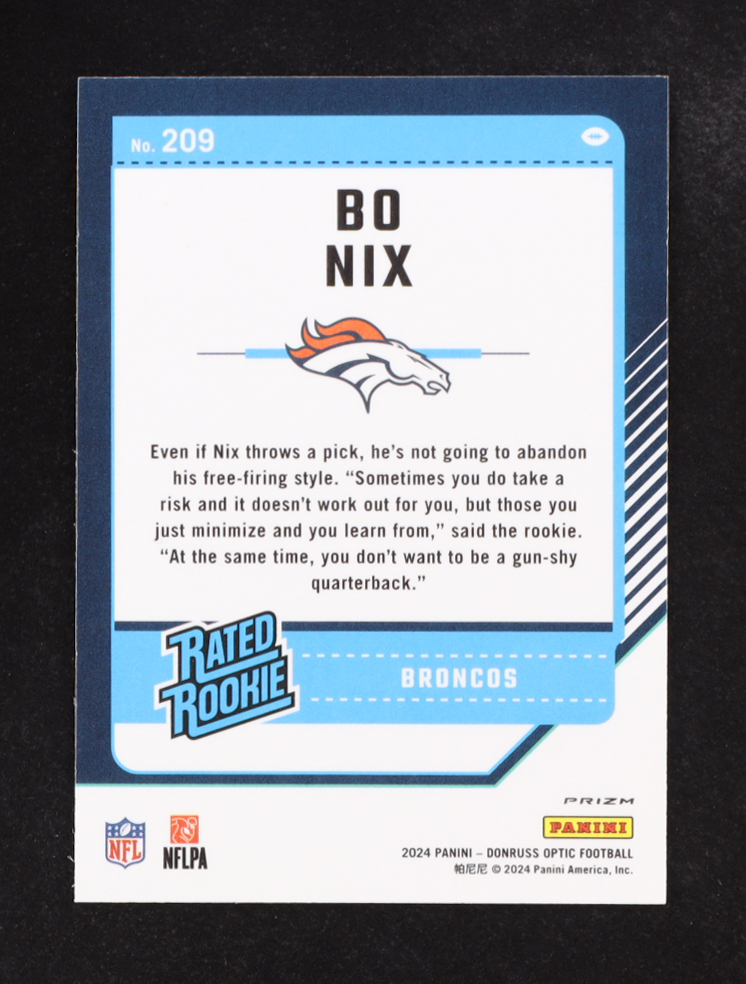Bo Nix 2024 Panini Donruss Optic Prizm RR #209 RC