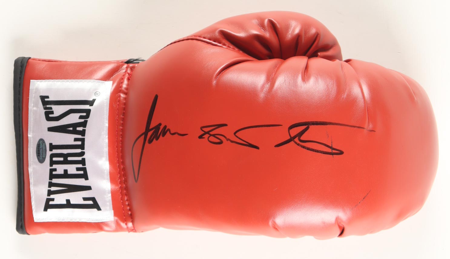 Everlast boxing glove has been hand-signed and inscribed by James Toney.` Please note the signature is smudged.