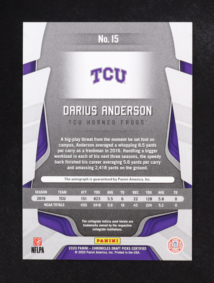 Darius Anderson 2020 Panini Chronicles Draft Picks Certified Autograph #15 RC #4/5