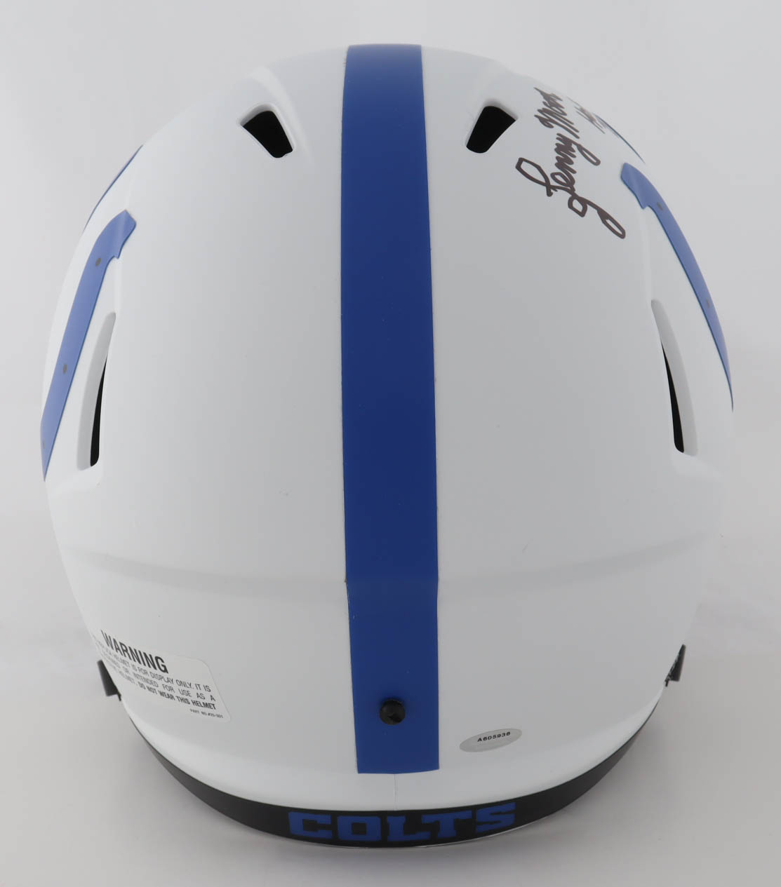 Riddell Indianapolis Colts Full-Size Lunar Eclipse Alternate Speed Replica Helmet. Hand-signed and inscribed by Lenny Moore (HOF).