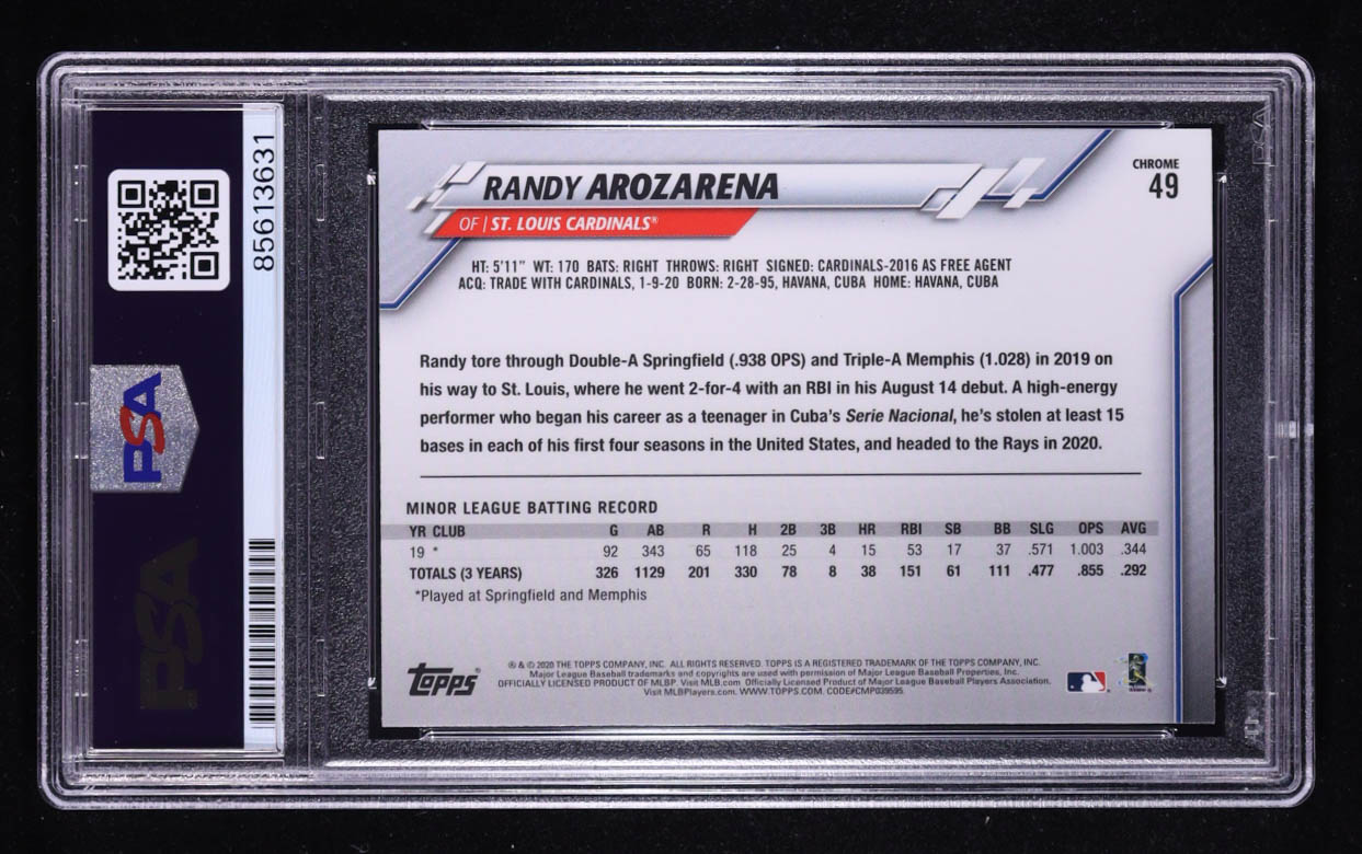 Randy Arozarena Signed 2020 Topps Chrome #49 RC (PSA Authentic | Auto 10)