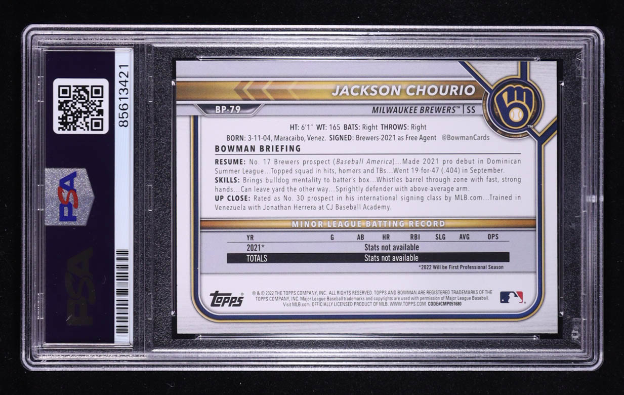 Jackson Chourio Signed 2022 Bowman Prospects #BP79 RC (PSA Authentic | Auto 10)