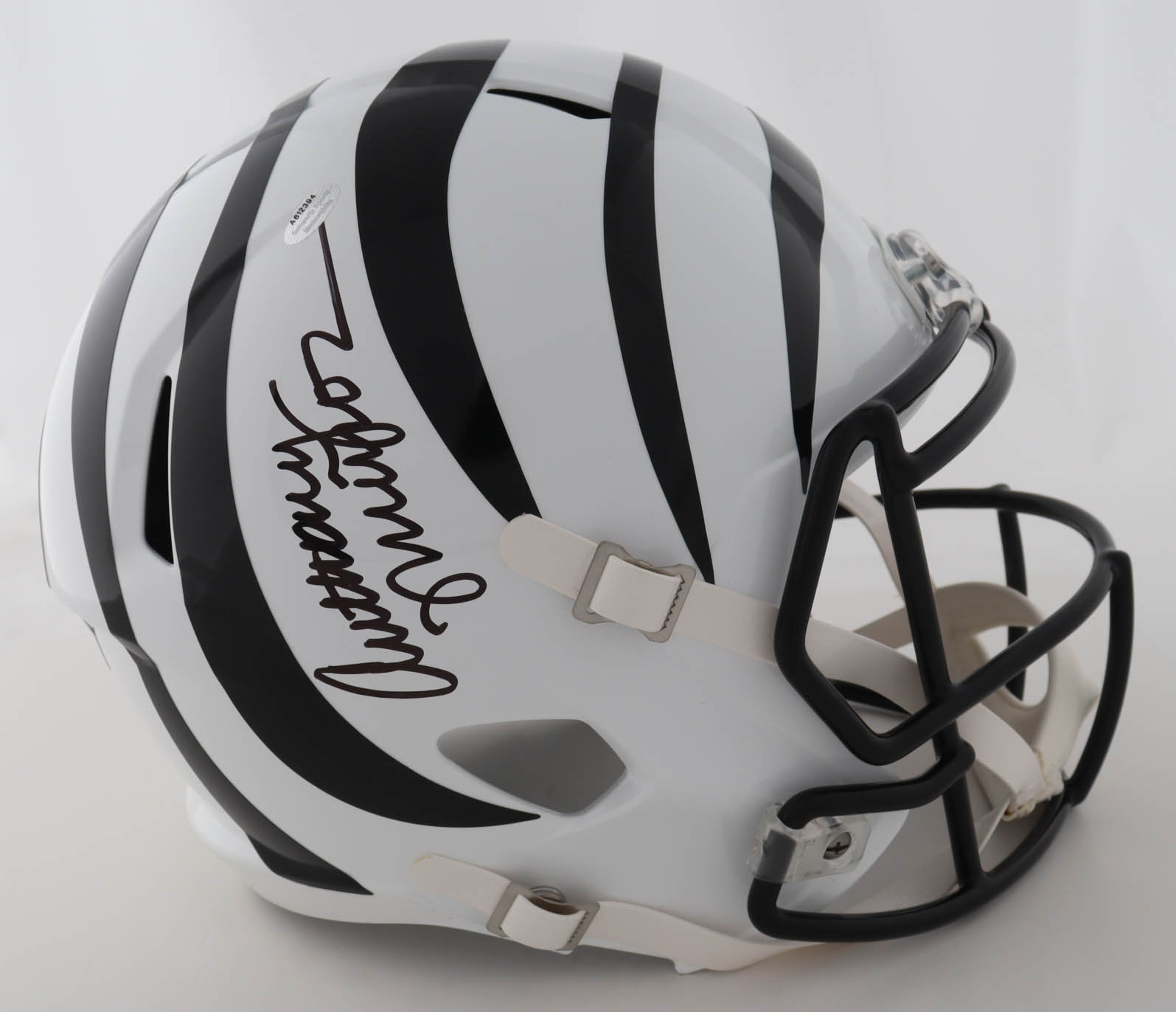 Riddell Cincinnati Bengals full-size replica White Alternate Speed helmet. Hand-signed by Anthony Munoz (HOF).