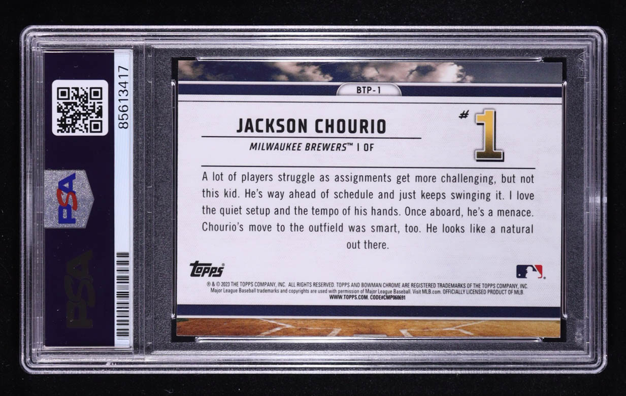 Jackson Chourio Signed 2023 Bowman Chrome Scouts Top 100 #BTP1 RC (PSA Authentic | Auto 10)