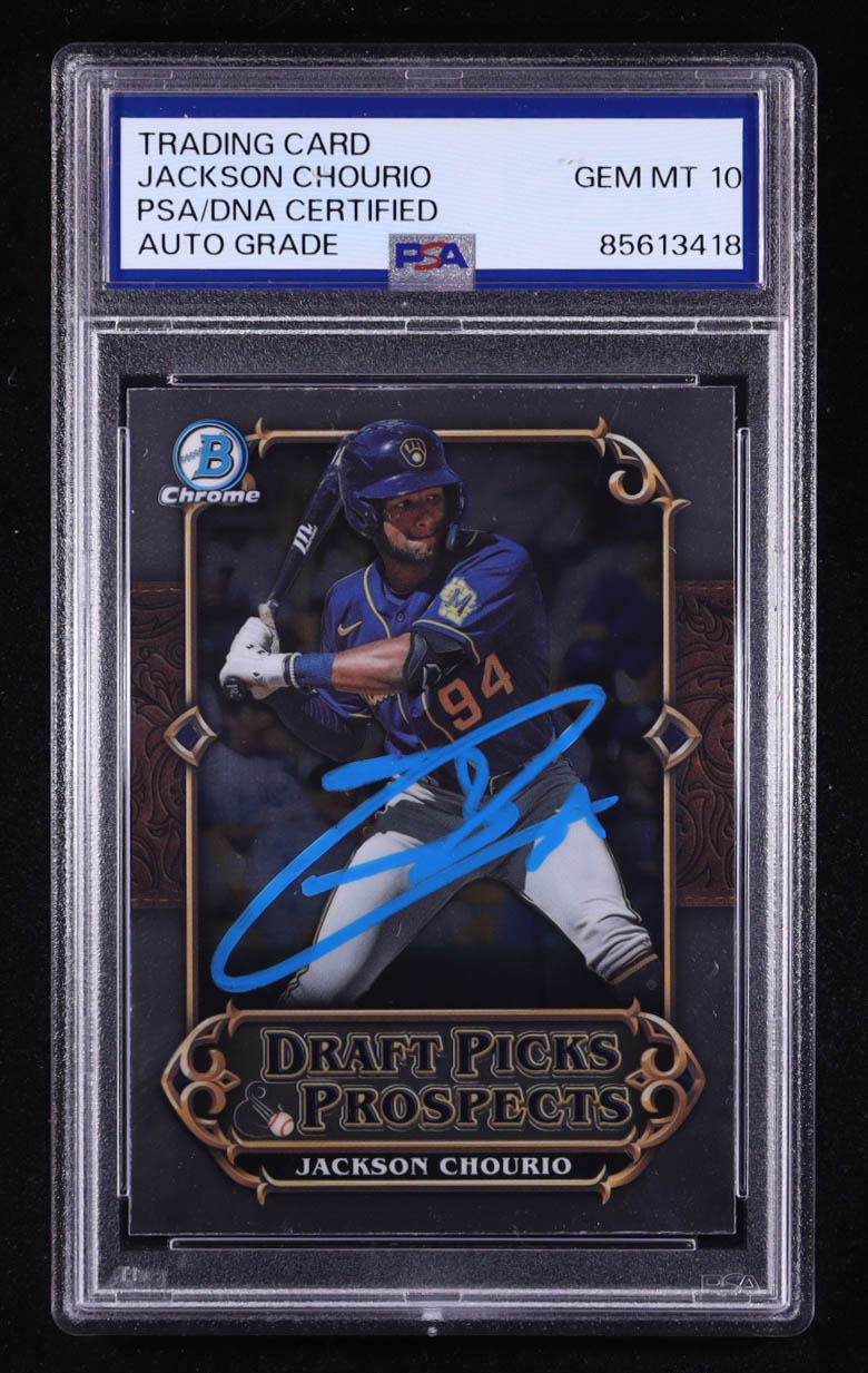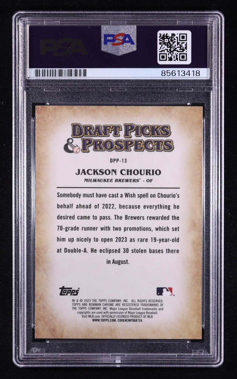 Jackson Chourio Signed 2023 Bowman Chrome Draft Draft Picks and Prospects #DPP13 RC (PSA Authentic | Auto 10)