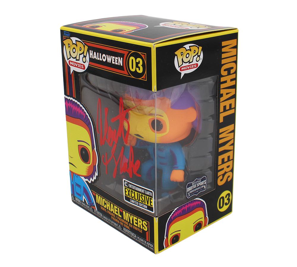 Vinyl figure measures approximately 4" tall and the packaging has been hand-signed and inscribed by Nick Castle (Michael Myers).