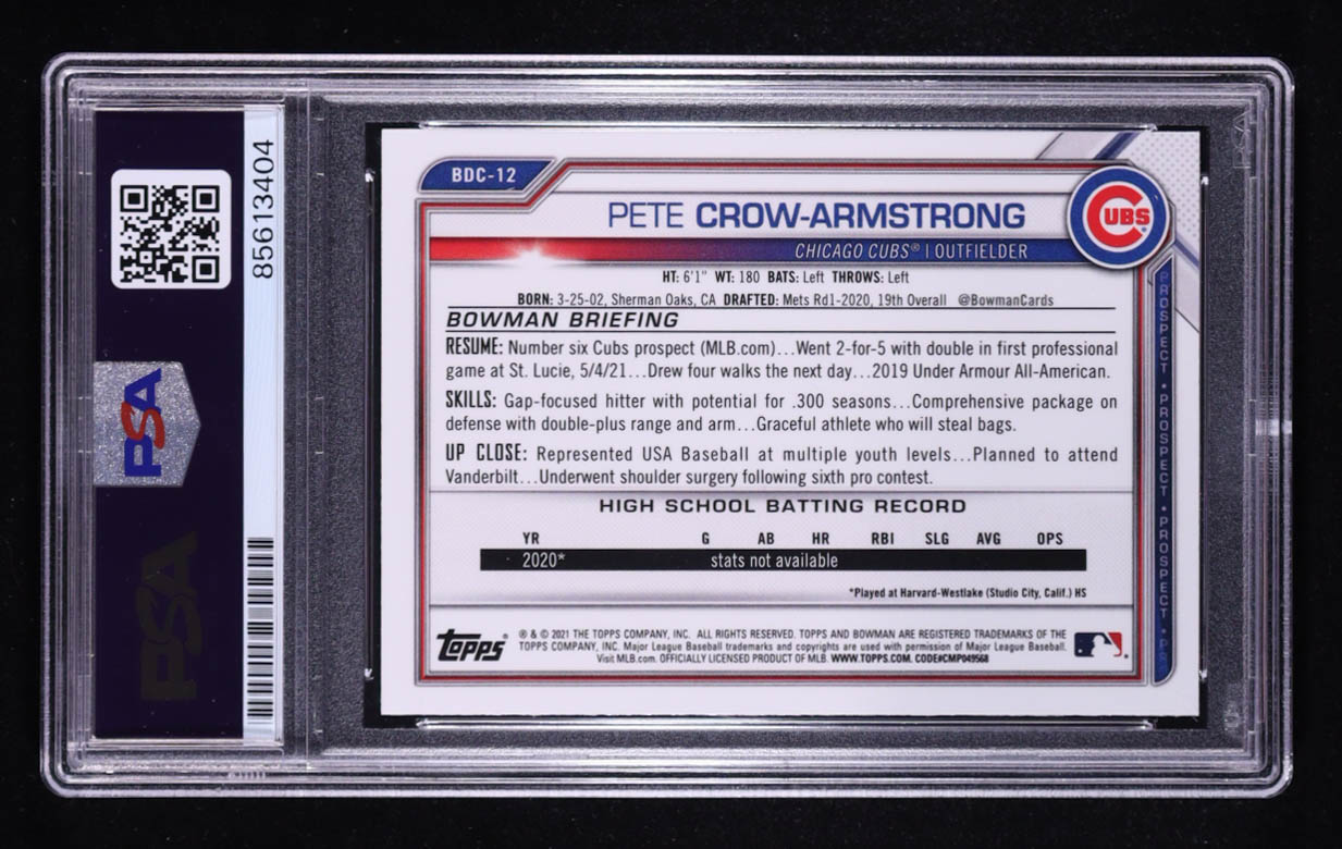 Pete Crow-Armstrong Signed 2021 Bowman Chrome Draft #BDC12 RC (PSA Authentic | Auto 10)