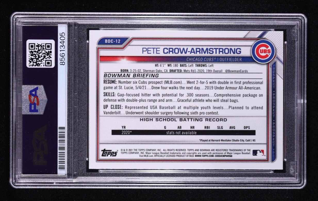 Pete Crow-Armstrong Signed 2021 Bowman Chrome Draft #BDC12 RC (PSA Authentic | Auto 10)
