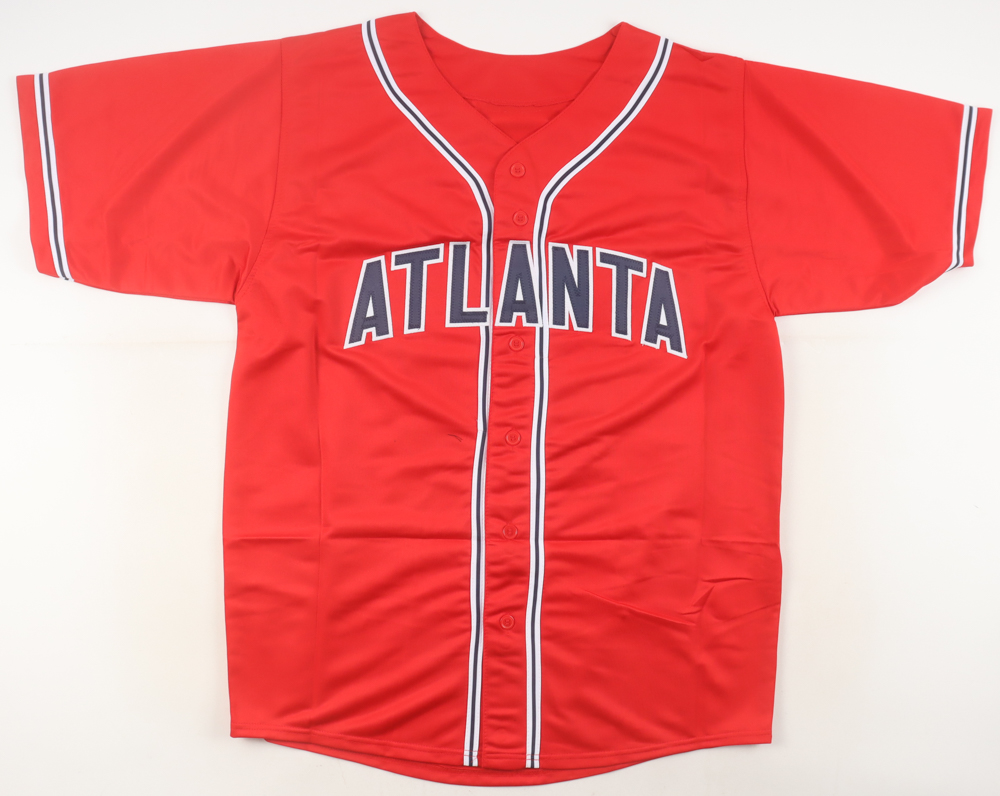 Custom jersey with everything sewn on, size XL. Hand-signed and inscribed by Tom Glavine (Atlanta Braves, HOF).
