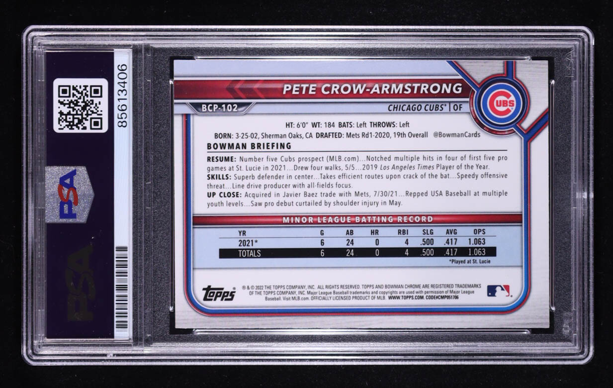 Pete Crow-Armstrong Signed 2022 Bowman Chrome Prospects #BCP102 RC (PSA Authentic | Auto 10)