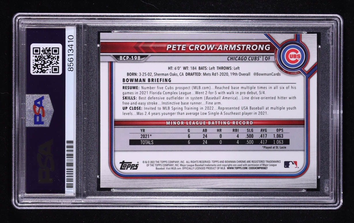 Pete Crow-Armstrong Signed 2022 Bowman Chrome Prospects #BCP198 RC (PSA Authentic | Auto 10)