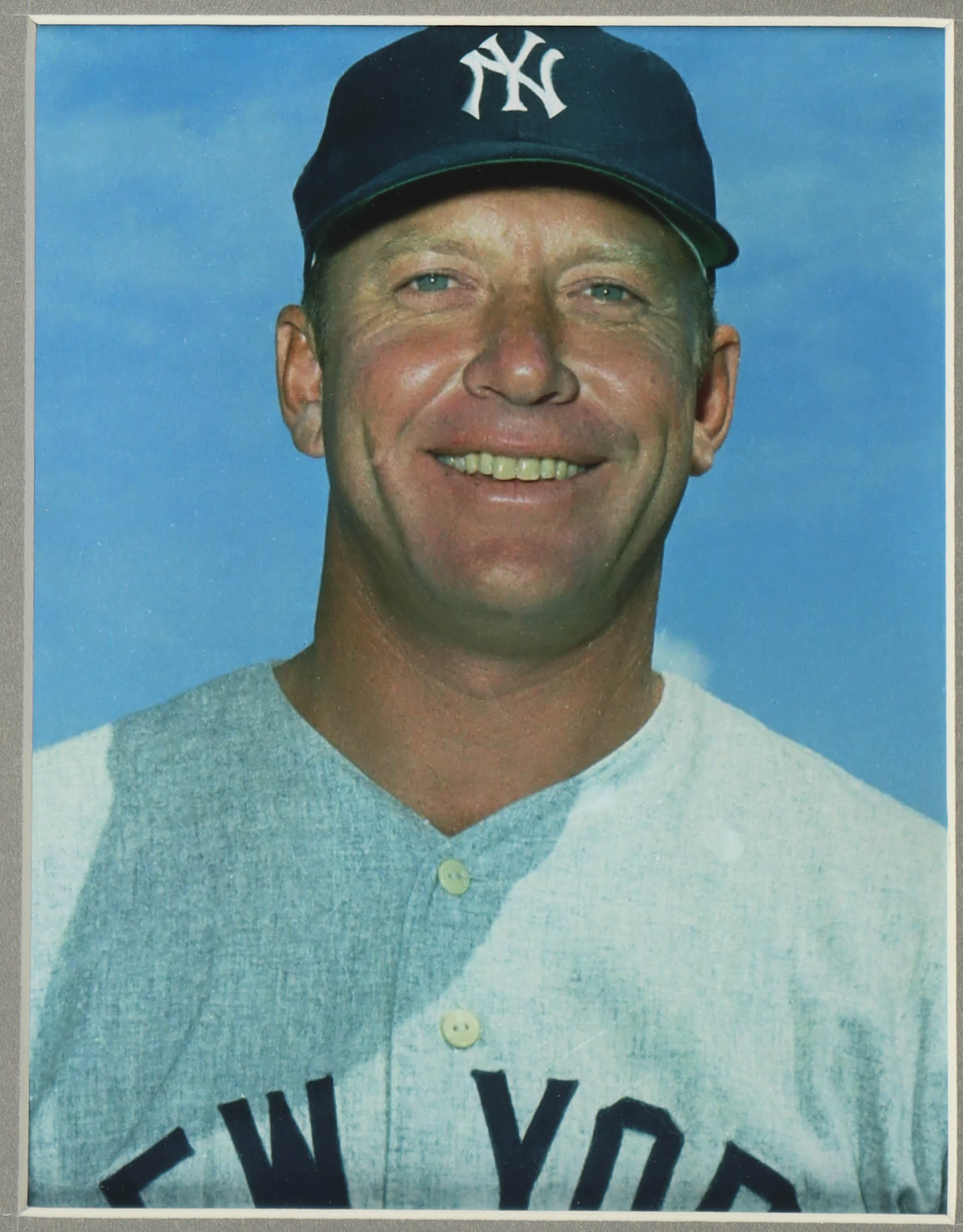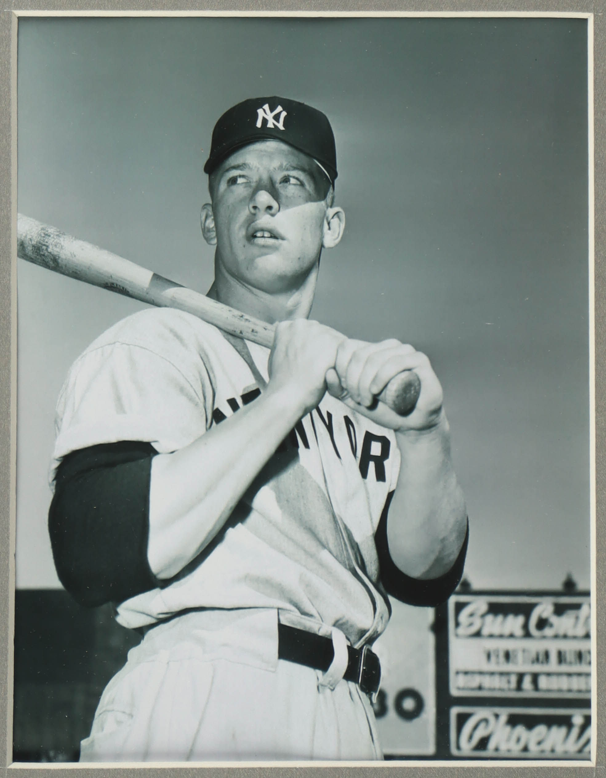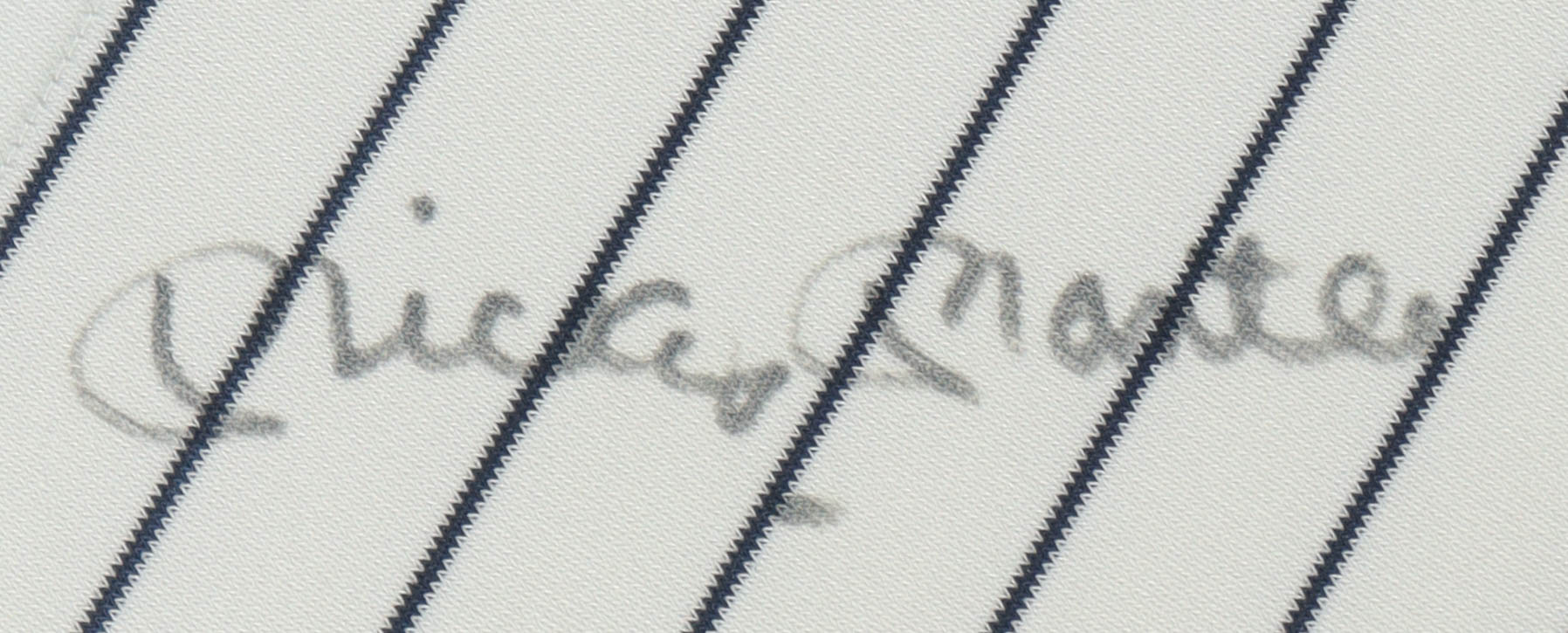 Custom frame measures approximately 30" x 39" in size and features a jersey that has been hand-signed by Mickey Mantle (D. 1995, New York Yankees, HOF). Display also includes (2) 8" x 10" photos as well as (2) sports cards.