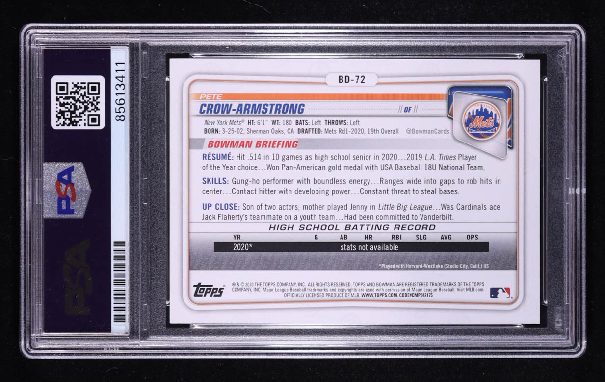 Pete Crow-Armstrong Signed 2020 Bowman Draft #BD72 RC (PSA Authentic | Auto 10)