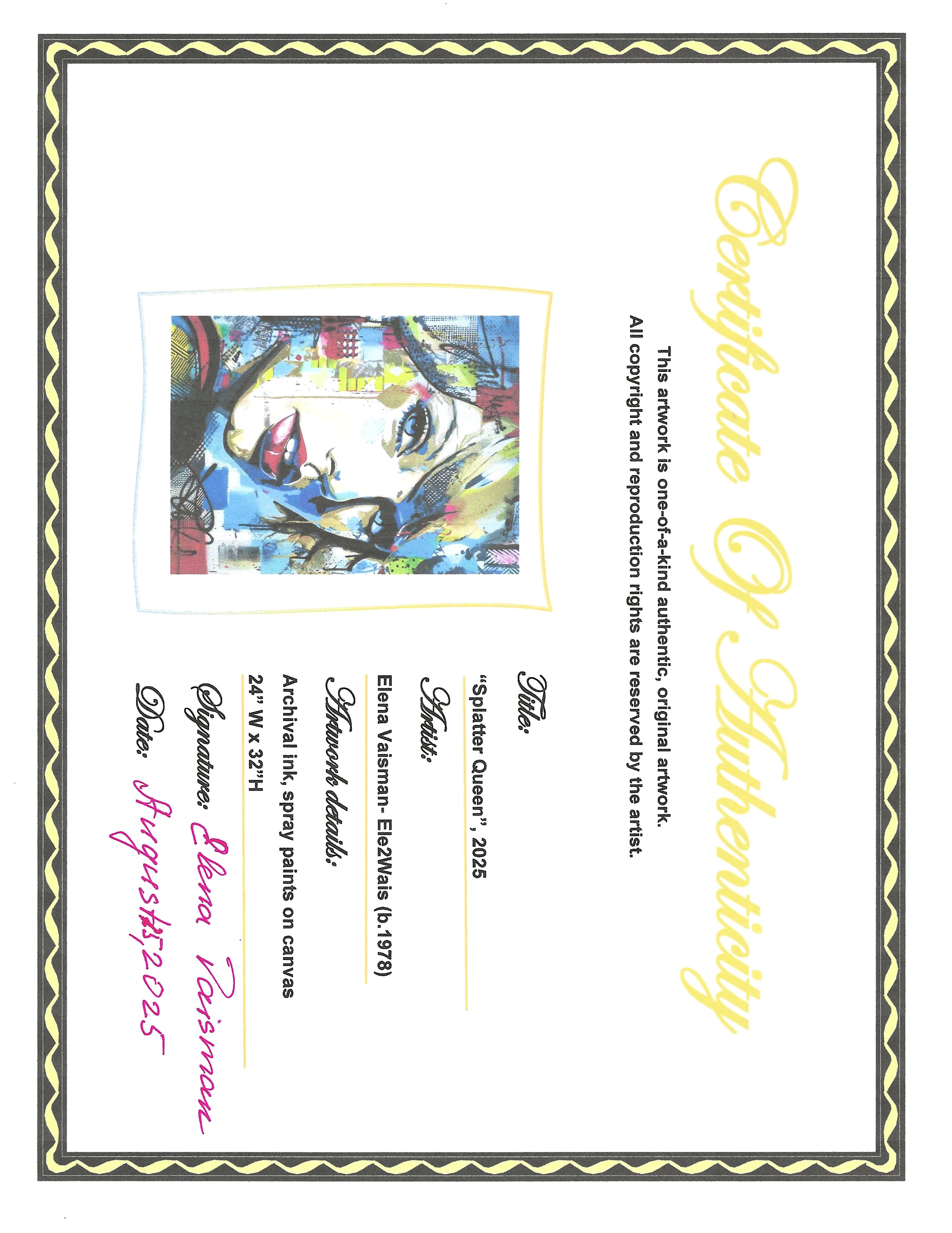 "Splatter Queen" 24x32 Original Acrylic Spray Paint Painting on Rolled Canvas by Elena Vaisman #1/1