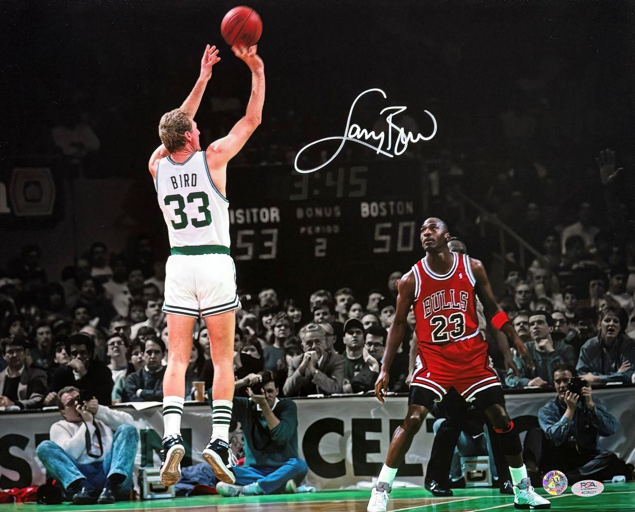 Photo measures 16” x 20” in size and has been hand-signed by Larry Bird (Boston Celtics, HOF).