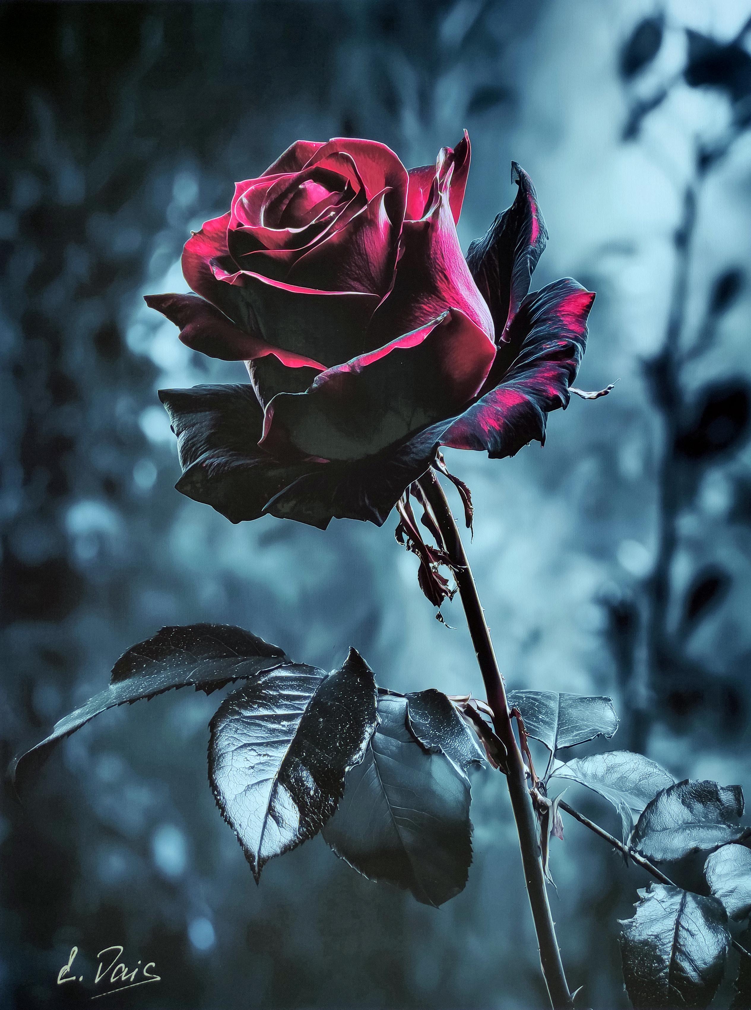 "Gothic Rose" 24x32 Original Archival Ink on Rolled Canvas by Elena Vaisman #1/1
